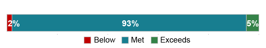 | Percentage of cases that met or exceeded expectationsFootnote 1 | 6% Below expectations | 94% Meets or exceeds expectations |