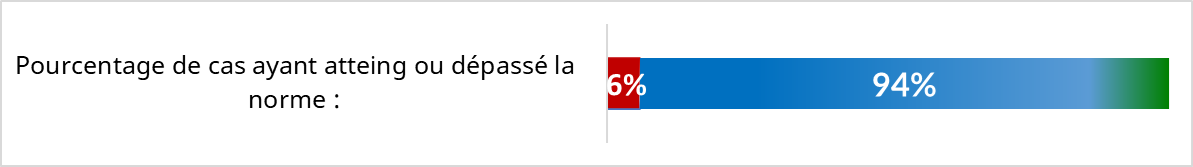| Pourcentage de cas ayant atteint ou dépassé la norme : | 6 % ne répond pas aux attentes | 94 % répond ou dépasse les attentes